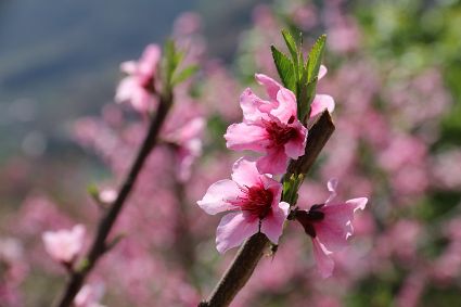 在瀘定縣冷磧鎮(zhèn)、德威鎮(zhèn)等地,桃花、油菜花及櫻花競相開放,一團團、一簇簇,綴滿枝頭,藍天、白云與各色花兒相交,金黃花海在微風中起伏。一畦畦油菜花田錯落有致、層次分明,綿延不斷?!岸聶鸦ㄩ_,三月桃花盛,四月紅櫻桃,五月水蜜桃?!背擞筒嘶ǎ磕觋柎喝?,瀘定的桃花也隨著和煦春風落滿枝頭滿樹的花芽沁著香氣,一點點溢到空氣中,香了春風,也香了整座城。