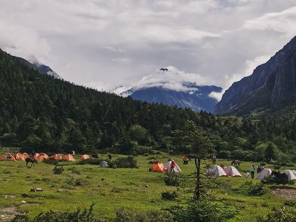 乘車最遠(yuǎn)可以到格西草原,整條徒步線路需要6—8小時(shí),中午一頓路餐,當(dāng)天可以返回,也可以選擇在格西草原露營(yíng)一晚,因?yàn)檫@里是徒步穿越貢嘎的必經(jīng)之路,露營(yíng)的隊(duì)伍也比較多。