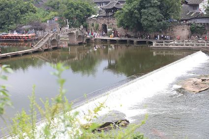 大榮橋。這座建在瀨溪河上、歷經(jīng)數(shù)百年的古石橋,一頭連著大足的地盤,一頭連著榮昌的地盤,故名??创髽s橋的最佳觀景點(diǎn)設(shè)在大榮寨對(duì)面的萬靈山腰,從那里看大榮橋和橋拱那端毗鄰的大榮寨,一種看白描連環(huán)畫中古鎮(zhèn)的感覺,就冉冉升起了。
