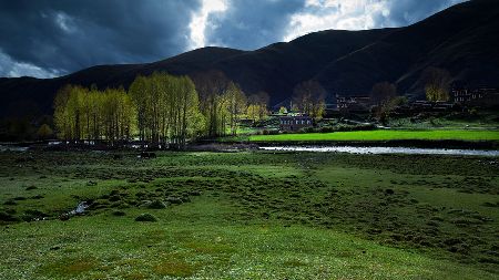 湛藍的天空下,雄鷹在盤旋,牛羊在安詳?shù)芈匠圆?,靜靜的小河在山邊蜿蜒流淌,充滿綠意的白楊樹在風中搖曳,藏式民居不時升起縷縷炊煙,寂靜、空曠的原野深處偶爾會傳來幾聲狗叫高原的陽光又賦予這幅風景畫凝重的色彩這樣的畫面叫人心醉,讓人留戀忘返從折多山腳下至新都橋鎮(zhèn),再至塔公草原,處處都是入畫的美景,不愧稱為“攝影家的天堂”。