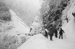 一九九七年十一月二十四日,連續(xù)多日大雪,把整個二郎山裹得嚴嚴實實,白茫茫一片。陣陣山風吹過,大霧就像瀑布一樣,從山頂直往下翻涌傾瀉。 一大早,州交通局打冰除雪排險的干部職工就從二郎山管理站直奔山埡口。載有防滑砂的大貨車穿迷霧,繞山梁,向山頂埡口疾馳。由于氣溫太低,霧又大,車上的擋風玻璃很快就結(jié)下了冰,路面打滑非常嚴重。前面車輛堵了起來,排險人員只好下車步行。 大霧彌漫,能見度很底,陰霾的天空又飄起了紛紛揚揚的雪花,剌骨的寒風陣陣襲來,只聽見車蓬布在風中“嗶剝”作響,卻看不見前面到底堵了多少車。排險人員只好相互攙扶踩著冰滑的邊路艱難地向行。好不容易來到堵在最前面的車子面前。原來是一輛載著原木的東風牌大貨車側(cè)滑在公路上,把整個公路堵死了。 局領(lǐng)導當即指揮大家用鋼釬、鐵鎬和鋤頭處理冰道,沒有撮箕,大家借來加水桶裝運冰雪……氣溫仍在急劇下降,剛從雪堆里刨出來的路,又被結(jié)起一層冰,就像地面上澆上了油,這就是冰雪道上有名的“桐油凌”。 有二位老同志不顧年老體弱,積極參與打冰除雪,一個在打冰時,被彈起的冰碴把腦門劃了一個口子,鮮血直往外冒。有人想幫他包扎,他堅決不干,自己就用手帕按住,把帽子向下拉蓋住傷口就算了。血從手帕中浸透出來,與眉毛上的冰凌結(jié)在一起。氣溫太低,冰層太厚,十字鎬每挖一下,多數(shù)情況下也就是挖下一個白點而已。不一會兒,另一位老同志已是滿頭大汗,大家勸他休息一下,他卻說:趁著現(xiàn)在雪不是太大,早點把主道上的冰雪多除點,過往二郎山的車輛就多一份安全。 排險人員的手凍紅了,刨冰雪碰傷的指頭還流著鮮血,身上蒸發(fā)的熱氣,把衣領(lǐng)口、袖子口和褲子口結(jié)成了冰,可是,誰也沒有吭一聲。 ……受堵車輛終于向前開動了。 風,越刮越猛,雪,越來越大。 防滑車在冰雪道上艱難地向前爬行著,車箱上面的職工們揮舞的洋鏟向路面撒著防滑砂。一路上風絞雪,防滑車象一頭不聽使喚的牛,顛簸、亂竄,好不容易才來到260(二郎山最險處),對這里“桐油凌”路面進行重點防滑處理后,防滑車又返回來,開始向山頂進發(fā)……風雪二郎山上打冰除雪、防滑排險,看似沒有驚天動地的壯舉,身臨其景才知其艱難辛苦。難怪當年每每經(jīng)過二郎山冰天雪地奇險路段的車,都會向風雪中屹立路邊的交通系統(tǒng)排險保暢通的職工們鳴笛致敬,風雪中的那份情彌足珍貴。 川藏線上的老司機傳下來一首傷心的順口溜:“車過二郎山,如闖鬼門關(guān),萬幸不翻車,也要凍三天!”其險峻實為罕見,尤其是途經(jīng)二郎山260(公路公樁)處,曾被淡虎色變的人稱為“鬼招手”的險路段。 1983年1月3日,有著安全行車44萬公里記錄的一位駕駛員開著輛嶄新的東風牌貨車,同行還有兩名職工,夜行二郎山,在彌天大霧中神秘地“失蹤”了。十五天后,搜山的人才用望遠鏡看到260公里路樁處的山崖下,有一塊汽車破篷布掛在樹枝,猶如招魂的凄厲幌幡在冷風中招搖晃動。鋼纜繩吊著搜山的人下到崖下400米深處的谷底。扒開一座座雪堆,叫人汗毛倒豎:雪堆下,盡是廢大梁、爛車廂、銹車頭和支離破碎的汽車,足有一個汽車連!一輛不知埋了多久的卡車廂里牛肉已腐爛,駕駛室里坐著三具發(fā)黑的僵尸……其狀慘不忍睹!