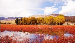 蔚藍蔚藍的天空飄著幾朵淡淡的白云,天空是那么近,仿佛你伸手可觸。一出縣城,你可以看到世界上海拔最高、面積最大的人造青楊林,這兒的海拔是三千七百多米,農(nóng)業(yè)學(xué)家認為海拔4000米是不能生長農(nóng)作物的,可是這里照樣是郁郁蔥蔥,到處是風(fēng)里閃爍的青楊樹,映著灘寬水淺的小河,炊煙裊裊的藏房,潔白豐滿的佛塔,還有色拉村的晨霧,好一派迷人的美景……