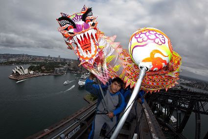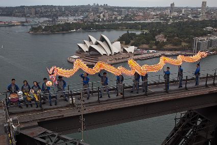 當(dāng)日,由當(dāng)?shù)厝A人團(tuán)體精心準(zhǔn)備的中國(guó)傳統(tǒng)舞龍亮相悉尼海港大橋,拉開中國(guó)新年慶?;顒?dòng)的序幕。