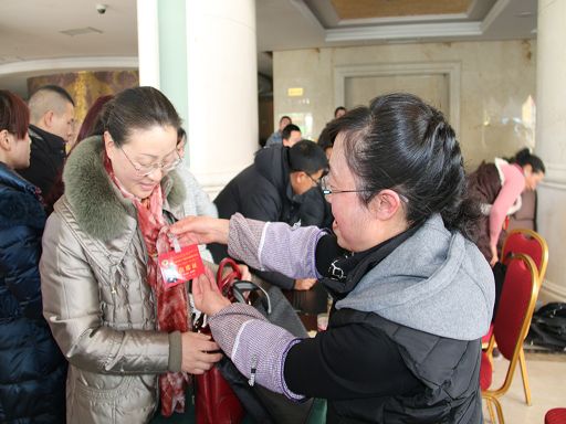 州政協(xié)第十二屆第四次會(huì)議委員報(bào)到現(xiàn)場。