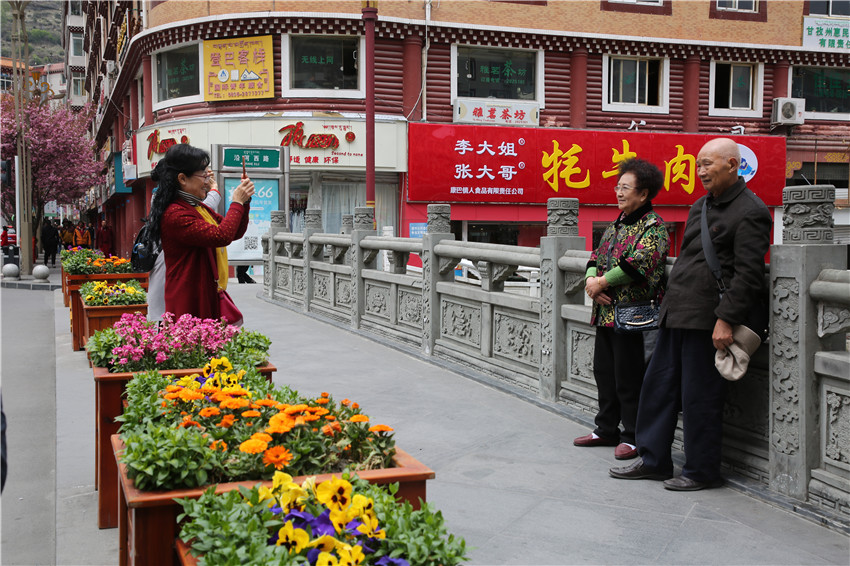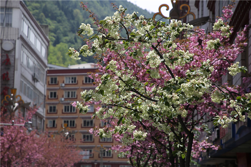 當春天遇見最美的櫻花時,驚艷了整個康定。櫻花與身邊人都將成為春日里的浪漫風景。櫻花之美,美在氣勢,櫻花紛飛,夢幻唯美。每年4月中旬,康定城北門的櫻花綻放后,人們像是約好了一樣聚集到這里,共赴這一場甜美盛宴。這一路繁花似錦,人們穿過枝椏花正盛的櫻花林,穿過粉色海洋,徑直奔向一個浪漫的童話,一路櫻花飄散,一路粉光燦爛。櫻花絢麗繽紛、陸續(xù)綻放,若恰逢一陣春風經(jīng)過,櫻花瓣隨風舞動,猶如紛落的雪花,空氣中浮動著櫻花特有的淡淡香氣,令人不禁懷疑自己置身夢境?!翱刀ǖ拇禾靵淼靡硪恍?,綻放的櫻花,滿街的花草,折多河畔楊柳依依,康定的春天無比驚艷,醉了游人。”周先生一邊拍照,一邊感嘆,他在康定生活了40多年,20年前的康定,可以說找不到像樣的花草樹木,進入新時代,康定城市變美了,城市綠化走在了前面,城市的美譽度舒適度不斷提升??刀ㄖ?,春色滿園,姹紫嫣紅,風光旖旎。