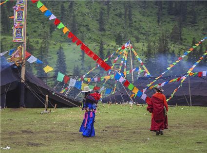 夏天是草原最美的季節(jié),道孚縣玉科草原在這個(gè)季節(jié)里正舉辦久負(fù)盛名的賽馬活動(dòng)。五顏六色的彩帶飄舞在牛毛大帳篷周?chē)矐c氣氛四處洋溢。來(lái)自遠(yuǎn)近牧區(qū)的親屬也專(zhuān)程趕來(lái)玉科草原訪親會(huì)友,參與賽馬角逐,濃郁的民族盛會(huì)令人耳目一新。