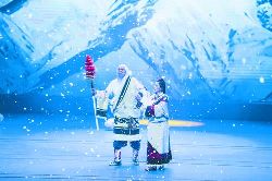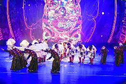 《圣潔甘孜·亞丁情》大型歌舞劇取材于稻城亞丁三座雪山分別象征慈悲、智慧、力量的民間傳說和民俗文化,根據當地特有的崇拜自然和保護環(huán)境意識的三怙主文化,以圣潔甘孜亞丁的三座雪山為背景,融入傳統(tǒng)頌唱風格、勞作場景、傳統(tǒng)藥泥面具與古裝,通過《豐收》、《打墻歌》、《敬酒歌》、《弦子舞》、《情歌對唱》、《亞丁三怙主》、《迎金剛》、《雄雞起舞》、《贊金剛》、《見解脫》等具有生活氣息和民俗色彩的歌舞表演,表達人們對雪山的感恩和敬畏,展現藏民族的淳樸善良,講述在落實黨的民族宗教政策和扶貧攻堅行動中,人們在雪山下的樂觀心態(tài)和幸福生活。
