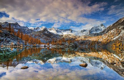秋色與藍(lán)天相映 明珠與雪山成趣