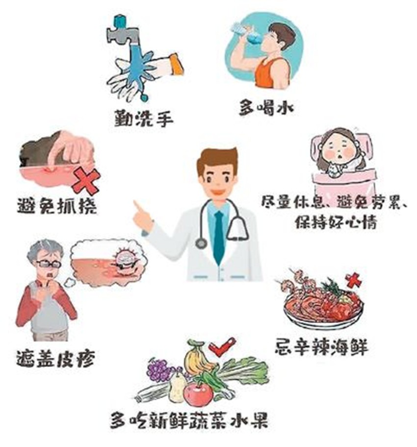 專家提醒,帶狀皰疹主要通過接觸傳播,抵抗力低的老年人和兒童應(yīng)避免接觸帶狀皰疹患者。與此同時,中老年人以及有自身免疫缺陷的人群要注意休息,合理飲食,加強(qiáng)鍛煉,增強(qiáng)抵抗力;糖尿病、腫瘤等患病人群,要特別留意觀察自身免疫狀況,養(yǎng)成良好生活習(xí)慣,有效控制原有疾?。荒贻p人也不能掉以輕心,避免頻繁加班、熬夜等導(dǎo)致抵抗力下降。一旦發(fā)現(xiàn)患有帶狀皰疹,要盡快就醫(yī),同時注意避免抓撓皮疹處,勤洗手、多喝水、多吃新鮮蔬果,忌辛辣及海鮮,多休息,避免勞累,保持好心情。