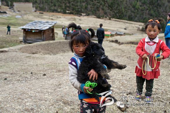 看到我們走過來,一個(gè)正在玩耍的藏族小女孩抱起了自家的小狗。(攝影 周崗峰)