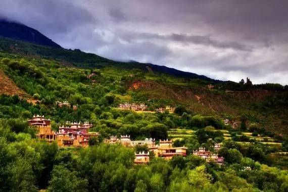 一座座崩科式藏寨在這山水之間獨(dú)享著天地的厚養(yǎng),令人魂?duì)繅?mèng)繞,這就是蝦拉沱村!“蝦拉”在藏語(yǔ)里是鹿的意思,“沱”是壩子的意思。