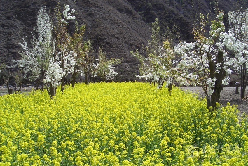 試想遠處的雪山白雪皚皚,身旁有粉紅的桃花、雪白的梨花、金黃的油菜花,絢麗斑斕,光彩奪目,有春天的生機和活力,多了一種靈氣和不落塵埃的灑脫。賞花累了,沐浴在海螺溝的溫泉里,身體宛如畫龍點睛漂浮的暖云,能深切感受到來自海螺溝冰川地底的熱力。心境或怡然自得,或超脫塵世,或?qū)庫o澄明,或天人合一。春天里的海螺溝是花的海洋,是春的世界,是人間的仙境。