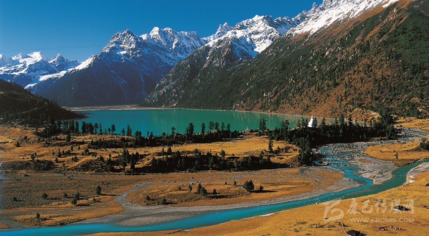玉隆拉措又名新路海,海拔4040米,傍川藏公路。新路海為冰川湖泊,平均水深10米,面積6.2平方公里。湖泊三面依山,一面臨塬,凝靜時(shí)“秋水共長(zhǎng)天一色”,象一碩大的明鏡映奇瑰山色于水中,又如靚藍(lán)的畫布上碧峰入幀;時(shí)有輕風(fēng)蕩來,湖中波光瀲滟,若仙女弄影。夏季湖水清澈見底,冬春時(shí)則靜謐得滲出翠綠來。正面處是一座雪影婆娑的奇峰,巋然不動(dòng);與雀兒山相呼應(yīng),兩峰之間冰清玉潔,整個(gè)溝壑處冰瀑縱橫錯(cuò)落,呈跳躍狀直撲谷底而來。