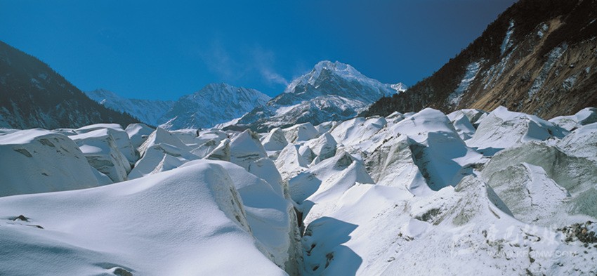 冬季的海螺溝是冬雪仙境、人間至美!海螺溝位于貢嘎雪峰腳下,是“蜀山之王”貢嘎山的問鼎畫卷和令人神往的“香巴拉門戶”,站在雪后的海螺溝遙望貢嘎神峰,猶如一道冰凝玉砌的天庭界碑,氣勢雄渾直指九霄,雪霧攜祥云共舞峰巔,絕世獨立的山王風范在冰雪仙靈的輔佐下,更顯帝王之氣。