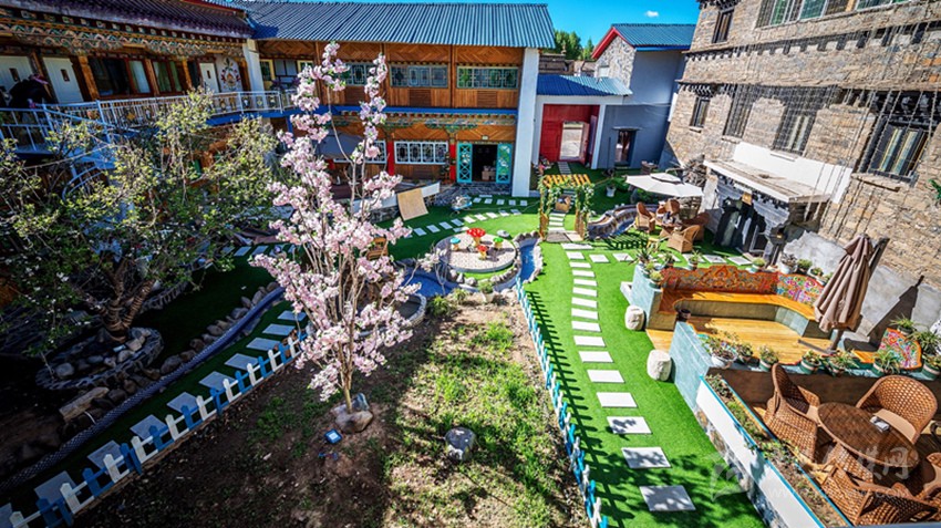 曾經(jīng)的倉庫變成了咖啡廳,關(guān)牛的地方變成了餐廳,土司房變成了溫泉套間,四合院變成了小橋流水,雖然有些改變,但留給客人的依舊是一個(gè)傳統(tǒng)藏式四合院?!拔ㄒ桓淖兊闹皇嵌嗔诵┬氯诵率聛韥硗?,在這里從你的全世界路過……”石雅琴借用張嘉佳的《從你的全世界路過》的話語,道出了她對(duì)“親愛的宅宅”的“定性”。