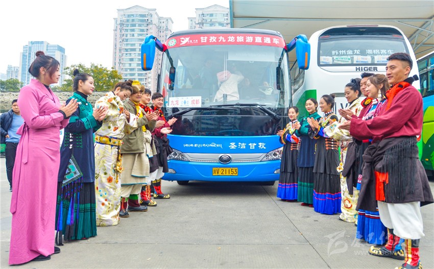 景區(qū)直通車授牌儀式和自駕游車隊授牌儀式也是本次推介會的亮點。兩項儀式旨在進一步方便廣大游客到九龍旅游,并開啟成都直通九龍旅游及運輸融合發(fā)展的歷史征程。現(xiàn)場,貼有“穿越藏彝走廊,體驗民俗風(fēng)情”和“甘孜九龍旅游直通車”車標(biāo)的汽車引得不少人注目,有的還當(dāng)即向工作人員咨詢票價、路線。