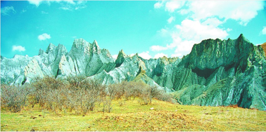 雪是柔情的,石山是墨翠的,猶如一幅冬日寫意圖,橫亙?cè)谔斓刂g的美色,而這就存在于冬季的道孚。