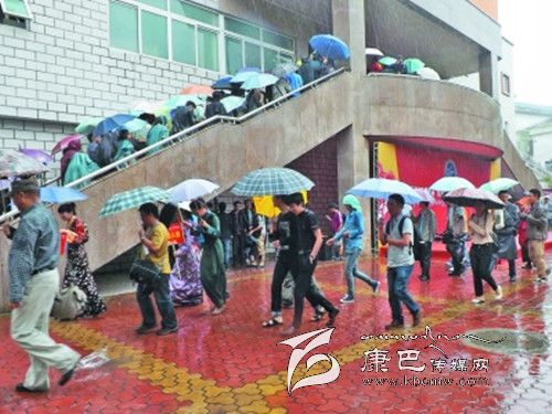 5月16日,清晨,成都陰郁的天氣毫不留情灑下急雨。西南民大科技館前,精心布置的紅色主席臺(tái)在雨簾中盛開一份火紅的心愿。前來觀展的人們撐著一把把雨傘在雨中等待。各大媒體記者冒雨進(jìn)行報(bào)道。