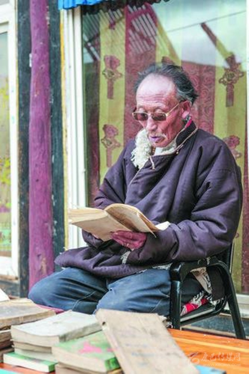 余音繞梁、鳴金收兵,天造地合的佳話叫人回味無(wú)窮。面對(duì)還沉浸在烽火邊關(guān)與兒女情長(zhǎng)中的老人,真有一種不忍打擾的感動(dòng)。幾十本從八十年代到二十一世紀(jì)由西藏、甘肅、青海、四川等民族出版社出版的各種藏文《格薩爾王傳》書籍,雖然有的邊角磨損嚴(yán)重,有的封面封底用塑料薄膜一針一線串起,卻沒(méi)有一本掉頁(yè),更不要說(shuō)有污漬灰塵了,揣摩著那一本本厚薄不一的書籍,如數(shù)家珍般逐一介紹書中的內(nèi)容,就算間隔30多年都還記得買書時(shí)的場(chǎng)景,足見(jiàn)老人對(duì)它的情有獨(dú)鐘。