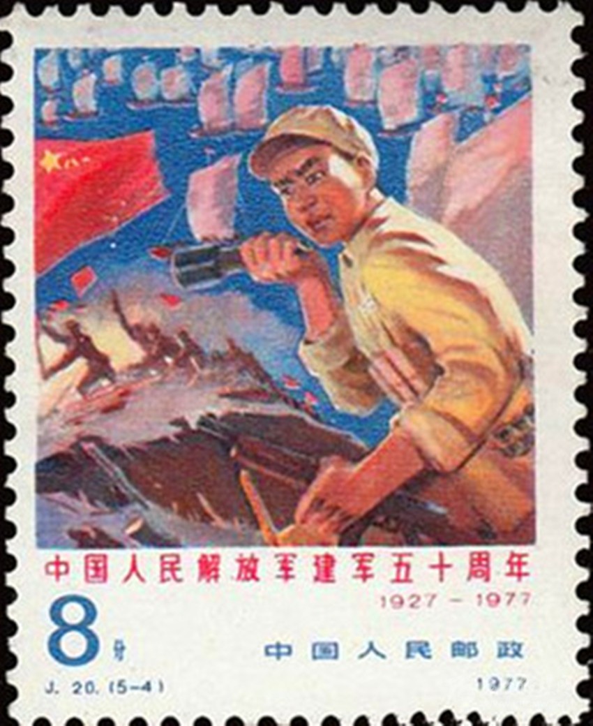 1977年8月1日發(fā)行的紀(jì)念郵票“雄師過大江”。