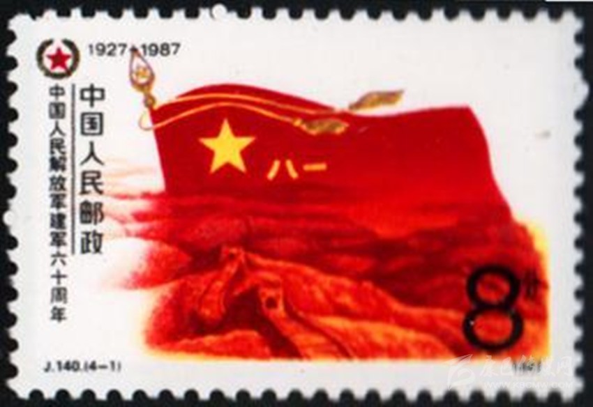 1977年8月1日原郵電部發(fā)行的《中國(guó)人民解放軍建軍50周年》紀(jì)念郵票,其中第4枚“雄師過大江”,圖案中一名沖在渡江隊(duì)伍前面的戰(zhàn)士高舉一面“八一”軍旗。1987年8月1日原郵電部發(fā)行的《中國(guó)人民解放軍建軍60周年》紀(jì)念郵票一套4枚。其中第1枚“軍魂”,郵票上一面鮮紅的“八一”軍旗迎風(fēng)飄揚(yáng),旗下是蜿蜒的萬里長(zhǎng)城,代表了中國(guó)人民解放軍是保衛(wèi)祖國(guó)和人民的“鋼鐵長(zhǎng)城”。1995年8月1日,原郵電部試發(fā)行一套“義務(wù)兵專用”郵票一套1枚,票名為“神圣的使命”,圖案以紅光四射的“八一”軍旗為背景,以現(xiàn)代化的飛機(jī)、坦克、火箭和象征和平的白鴿為襯托,畫面是威武的陸海空三軍,顯示我軍鋼鐵長(zhǎng)城般攻無不克、戰(zhàn)無不勝的精神風(fēng)貌。