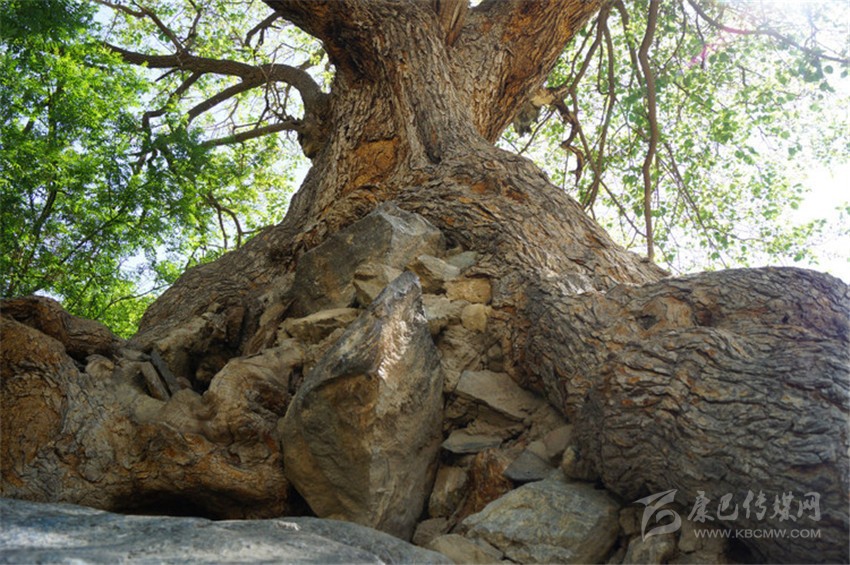 站在巴塘縣城夏邛鎮(zhèn)的廣場(chǎng)上,目光穿過鱗次櫛比的建筑上空,在東南方一角,遠(yuǎn)遠(yuǎn)就能看見一棵高大的桑樹沖破了城市的圍裹,直指蒼穹,在微風(fēng)中搖動(dòng)著嫩綠的枝葉。一位在廣場(chǎng)上搖動(dòng)轉(zhuǎn)金筒的老人告訴我,在那棵樹下,有一塊巨石,上面鐫刻有許多文字,因?yàn)槭^與樹共生共長(zhǎng)在一起,人們?nèi)∽鳌肮派1敝烂?,它也因此成為了聞名巴塘的景點(diǎn)之一。聽后,我怦然心動(dòng),乘著涼爽的晨風(fēng)我向著“古桑抱石”景點(diǎn)走去。