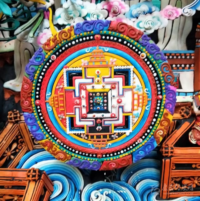 一盆冰涼的水、一坨坨顏色各異的酥油。巴塘縣康寧寺里,幾位藝僧正在滴水成冰的天氣里,手指不停浸在水中,然后掐出一塊塊酥油,捏成各種佛像、人物、飛禽走獸以及花卉草木,栩栩如生。