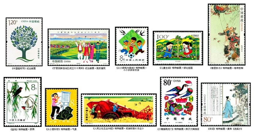 2019年3月12日,中國郵政發(fā)行《中國植樹節(jié)》紀(jì)念郵票,圖案主體是意為雙手托起的綠色家園的一株枝繁葉茂的參天大樹,樹干枝頭上方層層綠葉中設(shè)計點(diǎn)綴了象征城鎮(zhèn)、鄉(xiāng)村、河流、山川、藍(lán)天白云等符號化圖形,其中就有兩只飛燕。寓意通過全民植樹造林活動,改善生態(tài)和生活環(huán)境,共同創(chuàng)造綠水青山的美麗中國。郵票中出現(xiàn)燕子象征大自然的生態(tài)美還有一枚即2019年9月19日發(fā)行的《寧夏回族自治區(qū)成立六十周年》紀(jì)念郵票,其中第二枚“脫貧富民”,圖案展現(xiàn)了寧夏大地的青山綠水,一派生機(jī)盎然的景象,在歡呼的人群上空就飛翔幾只燕子。