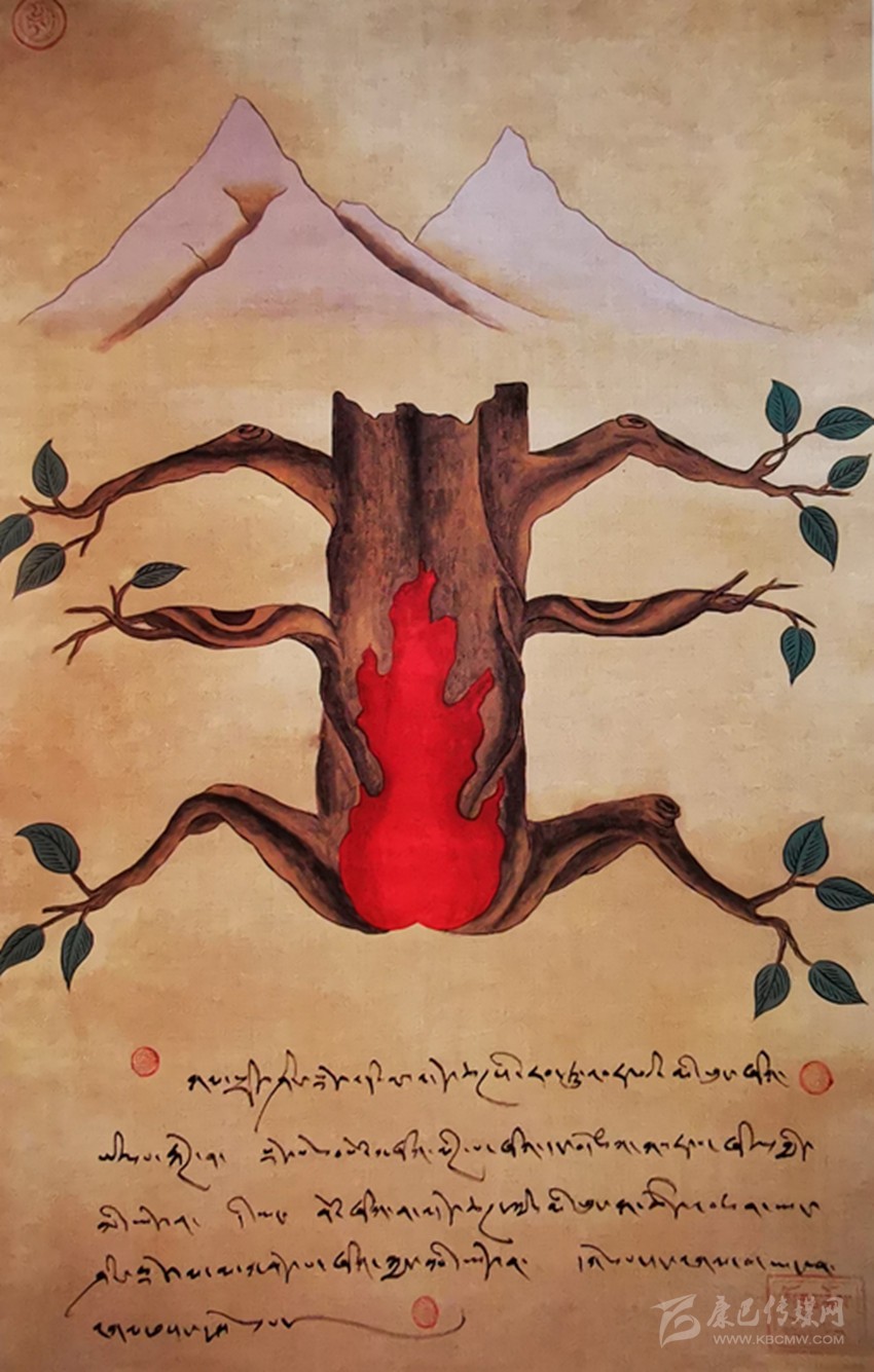 耷·瓊培介紹說(shuō):“在新概念唐卡中,慈悲、智慧、勇猛之力是通過(guò)一朵花、一片云、一條河、一捧沙來(lái)展現(xiàn),每幅作品都有嶄新的理念、巧妙的構(gòu)思、簡(jiǎn)潔的構(gòu)圖、抽象的符號(hào)、象征性的語(yǔ)言和裝飾化的風(fēng)格,總體來(lái)說(shuō)頗有清新之意?!?/span>