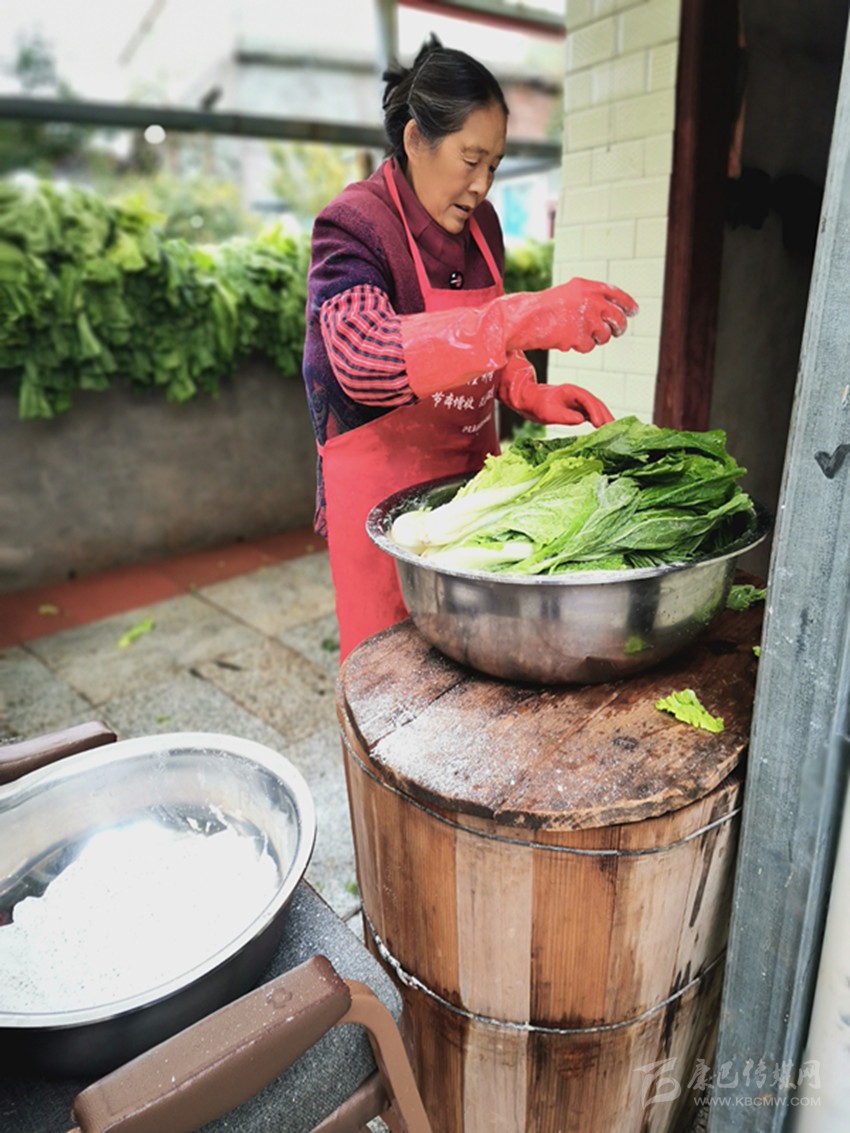 100多年間,周氏家族代代相傳的鹽白菜制作技藝,也被傳至其鄰居張恒芬的手上。這個(gè)聞著隔壁鹽白菜香味長(zhǎng)大的村里人,如今已是周振良每年制作鹽白菜時(shí)的好幫手,她在推廣這道山珍美味的同時(shí),也致力于挖掘其背后豐富的文化傳承。