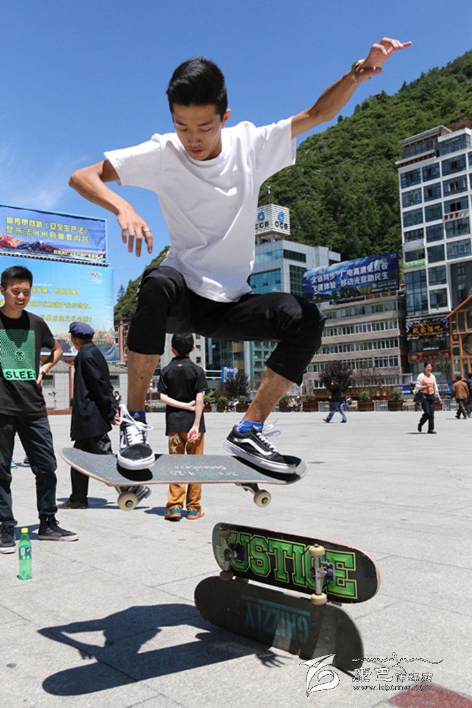 提到極限運動,你首先會想到什么?直排輪、空中沖浪、跑酷、攀巖……它們中很多都由滑板延伸而來,因此滑板又被稱為極限運動的“鼻祖”。在康定,有這么一群年輕人,他們每到暑假,每天都會在情歌廣場集合,踏上滑板、踩上輪滑挑戰(zhàn)一個個“不可能的任務(wù)”。一身肥大的T恤牛仔,夸張的金屬耳釘、項鏈、手鏈、戒指,和著動感十足的Hip-Hop音樂,踩著滑板在障礙之間穿梭,間或穿插幾個高難度花式動作,引得觀眾此起彼伏地喝彩尖叫……這是很多人印象中滑板、滑輪小子的形象。但當賀淼、謝明洋、陳凱他們出現(xiàn)在記者面前時,簡單的裝束真有點讓記者意外。他們的身上幾乎不見任何首飾,普通的T恤加瘦版牛仔褲,還有頭上簡單的鴨嘴帽, “Hip-Hop” 前衛(wèi)的影子并不明顯。