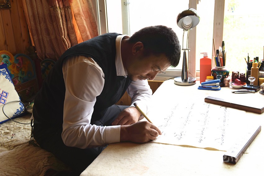 “德珍書法原本就是集歷史上藏文書法大師作品精華而成?!边@些年,昂旺曲批呆在理塘,潛心研究當(dāng)代各個(gè)藏文流派名家的書法作品,同時(shí)和內(nèi)地的漢字書法名家保持著聯(lián)系。他希望自己沿著“集眾家所長(zhǎng),兼收并蓄”的精神傳統(tǒng),把“德珍派”藏文書法的傳統(tǒng)發(fā)揚(yáng)廣大,同時(shí)能有所創(chuàng)新。