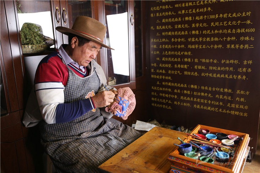 作為一名旅行者,四龍降澤老人熱情地接待了我,他是新龍縣人,因為妻子是道孚人,退休后隨妻子在道孚生活。從14歲開始學(xué)習(xí)制作藥泥面具,迄今為止已經(jīng)有了50年的制作經(jīng)歷,手藝愈發(fā)成熟,其中一句“藥配好了是藥,配不好就是毒”讓人印象深刻,因為到來的時間恰巧,有幸見到大師制作藥泥面具的過程,算是這場沖動旅行的意外驚喜。