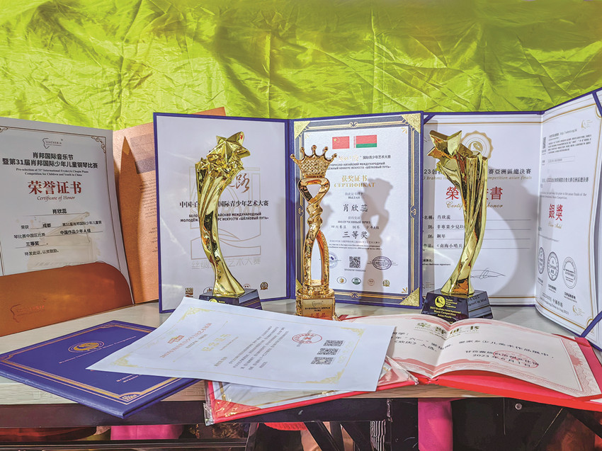 第一次比賽,取得不菲的成績,肖欣蕊有了自信。2023年6月,她又參加了中俄絲綢之路音樂大賽鋼琴比賽,拿到了二等獎,成功晉級總決賽,不過,由于時(shí)間關(guān)系沒有參加總決賽。