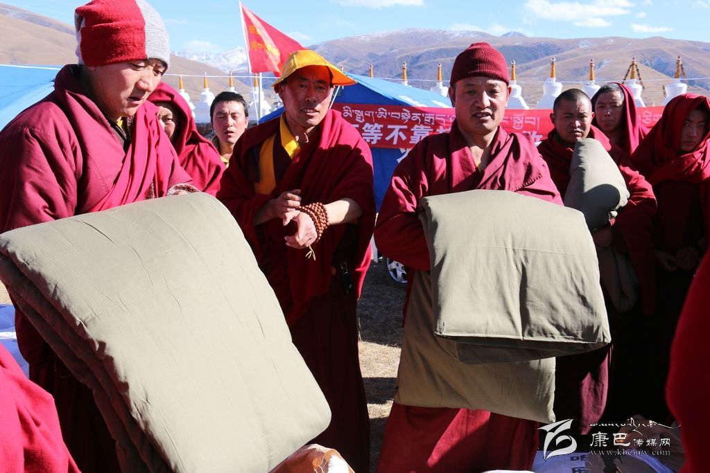 為幫助地震災(zāi)區(qū)廣大受災(zāi)僧眾安全過冬,解放軍總裝備部緊急調(diào)運了一批軍用棉被和帳篷,以實際行動給災(zāi)區(qū)群眾送上一份溫暖。29日下午,部分救援物資運抵道孚縣惠遠(yuǎn)寺,道孚縣統(tǒng)戰(zhàn)部受總裝備部的委托,為該寺受災(zāi)僧侶發(fā)放了533床棉被和13頂帳篷。據(jù)了解,此次捐贈棉被均是部隊購置高質(zhì)量、無雜質(zhì)的優(yōu)質(zhì)軍用棉被,捐贈物將陸續(xù)分發(fā)到康定、道孚兩縣的受災(zāi)寺廟,重點解決受災(zāi)僧侶缺少御寒棉被的問題。(記者 張濤 攝影報道)