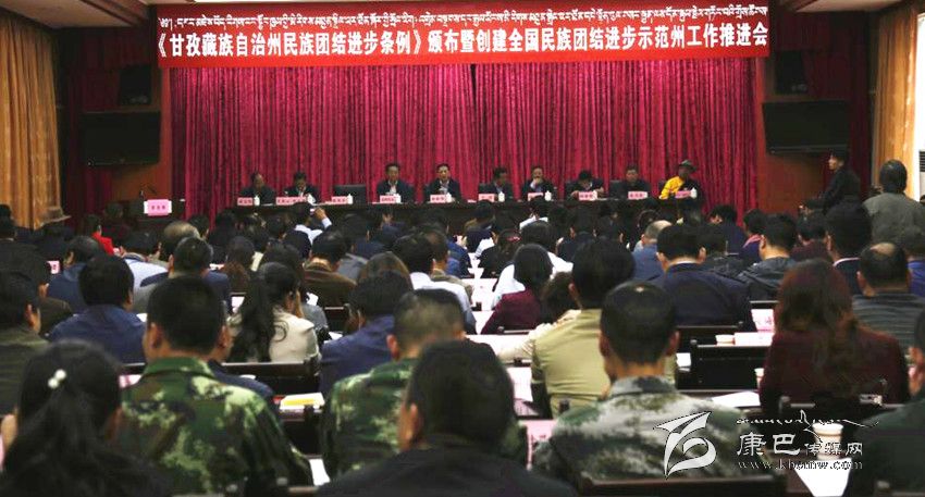 本網(wǎng)訊(記者 楊杰 文/圖)9月2日下午,我州召開《甘孜藏族自治州民族團(tuán)結(jié)進(jìn)步條例》頒布暨創(chuàng)建全國民族團(tuán)結(jié)進(jìn)步示范州工作推進(jìn)會,主要任務(wù)是貫徹落實8月1日頒布實施的《甘孜藏族自治州民族團(tuán)結(jié)進(jìn)步條例》,表彰命名全州第三批民族團(tuán)結(jié)進(jìn)步示范單位,總結(jié)交流示范州創(chuàng)建工作經(jīng)驗,安排部署今后一個時期的民族團(tuán)結(jié)進(jìn)步示范州創(chuàng)建工作。