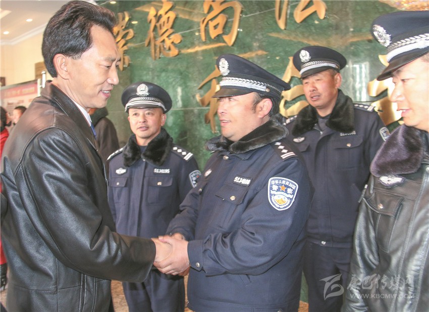 圖為肖友才看望慰問(wèn)公安干警。