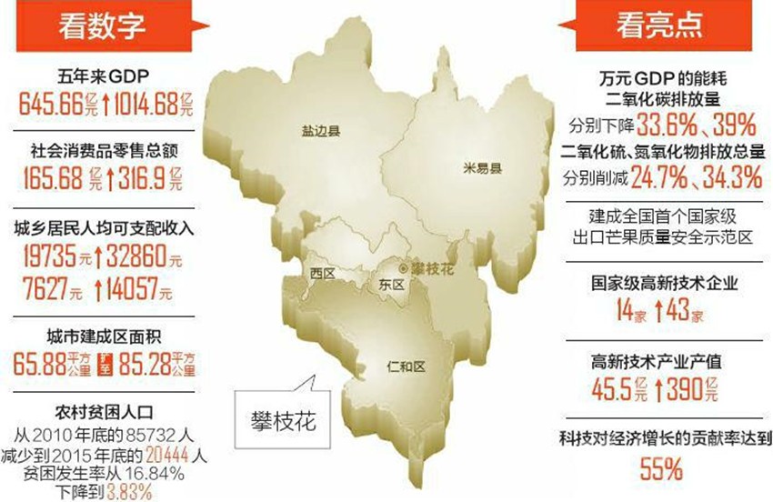 2013年,攀西戰(zhàn)略資源創(chuàng)新開發(fā)試驗(yàn)區(qū)設(shè)立,兩地大面積進(jìn)入試驗(yàn)區(qū);根據(jù)我省去年編制出臺(tái)的五大經(jīng)濟(jì)區(qū)“十三五”發(fā)展規(guī)劃,攀西經(jīng)濟(jì)區(qū)包括攀枝花市和涼山州2市(州)、22個(gè)縣(區(qū)),涉及經(jīng)濟(jì)總量2240億元。