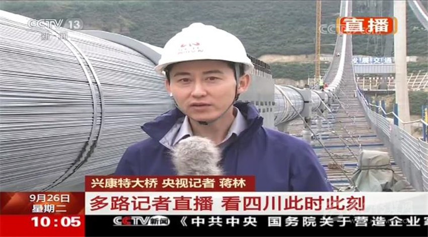 蔣林從興康特大橋建設現場發(fā)回直播報道