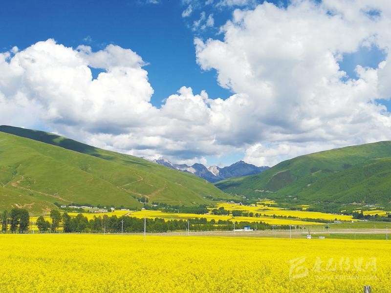 成都市郫都區(qū)對口援建的甘孜州道孚縣協(xié)德鄉(xiāng)萬畝油菜基地一片生機(jī)盎然。 陳凱 攝