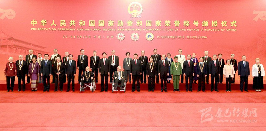 9月29日,中華人民共和國國家勛章和國家榮譽(yù)稱號頒授儀式在北京人民大會(huì)堂金色大廳隆重舉行。中共中央總書記、國家主席、中央軍委主席習(xí)近平向國家勛章和國家榮譽(yù)稱號獲得者頒授勛章獎(jiǎng)?wù)虏l(fā)表重要講話。 新華社記者 鞠鵬 攝