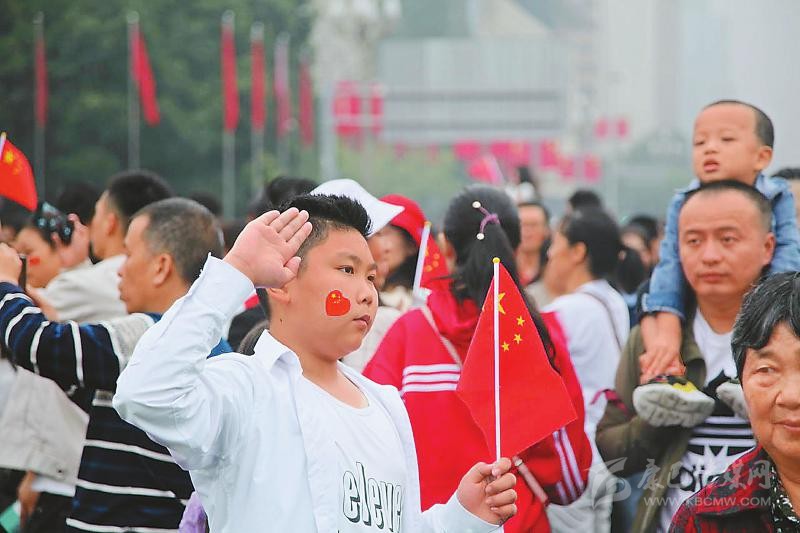 在廣元,雖然天空飄著小雨,但上百名黨員干部和市民自發(fā)聚集在市政府廣場。雄壯的國歌聲中,目送五星紅旗冉冉升起后,現(xiàn)場爆發(fā)出熱烈的歡呼聲。升旗儀式結(jié)束后,廣元市委組織部年輕干部趙志浩請同事為自己和父親拍了3張合影。作為當?shù)匾M的人才,他第一次在廣元參加國慶升旗活動,“見證共和國70華誕,也激勵我為廣元發(fā)展貢獻力量。”