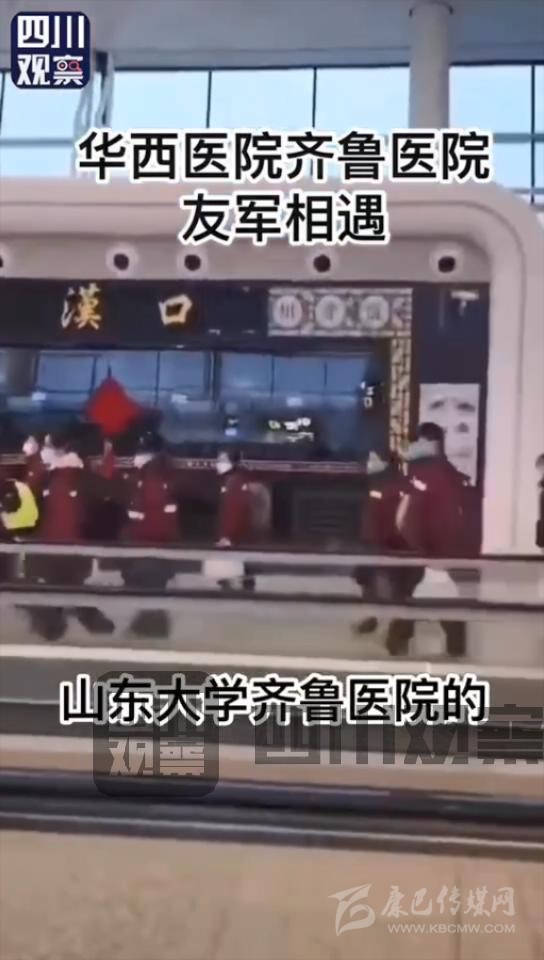 2月7日,四川大學華西醫(yī)院和山東大學齊魯醫(yī)院的援助隊在武漢天河機場相遇,兩隊醫(yī)生護士隔空呼喊“加油”。據(jù)悉,他們將共同接管武漢大學人民醫(yī)院東院區(qū)。
