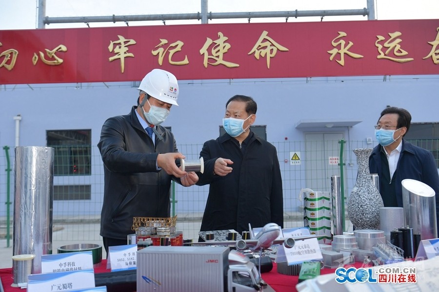 2月24日,彭清華書(shū)記到廣元經(jīng)開(kāi)區(qū)中孚鋁業(yè)公司調(diào)研,觀看企業(yè)產(chǎn)品展示,了解電解鋁產(chǎn)業(yè)發(fā)展情況。