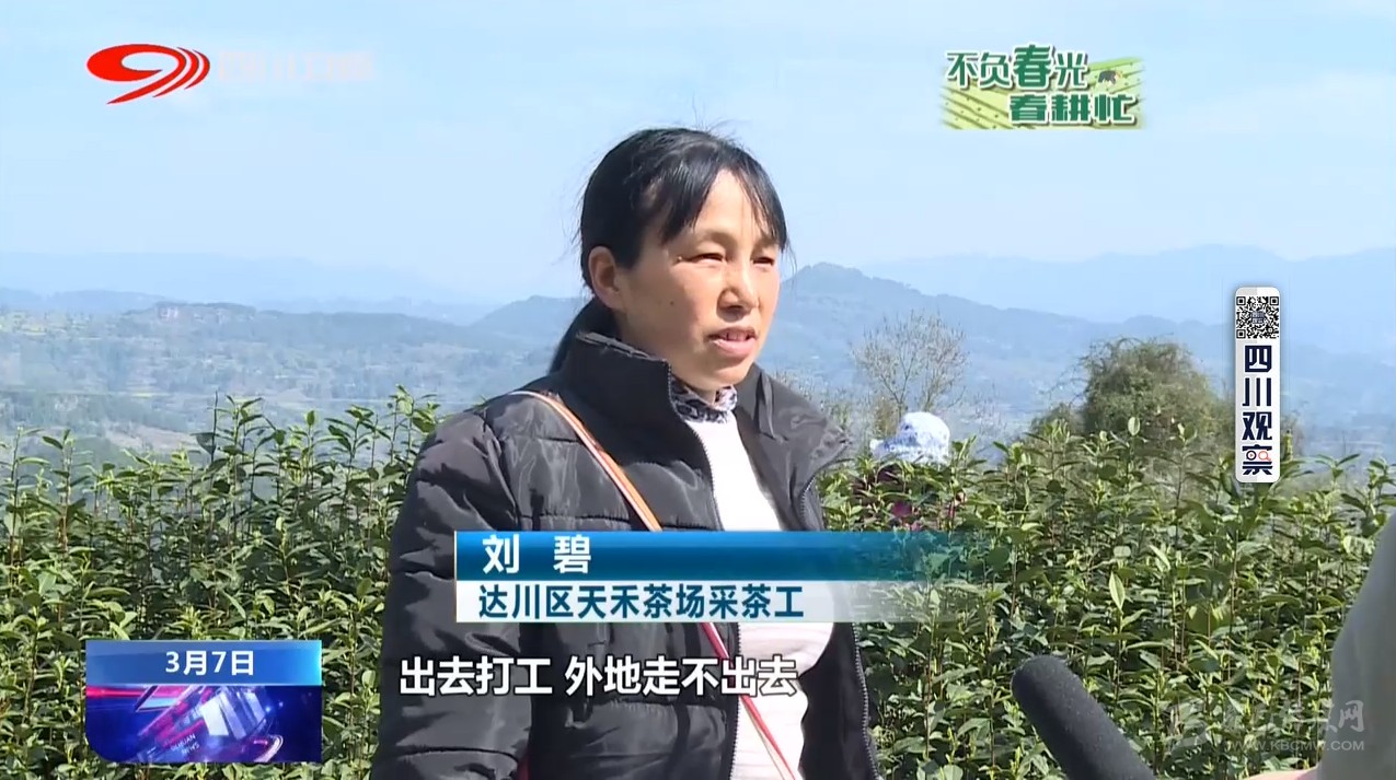 達(dá)川區(qū)天禾茶場(chǎng)采茶工劉碧:我們今年這個(gè)疫情期間出去打工外地走不出去,所以說(shuō)我們聽(tīng)了茶場(chǎng)招工,我們就到茶場(chǎng)找工作,掙點(diǎn)錢,賺點(diǎn)生活費(fèi)。