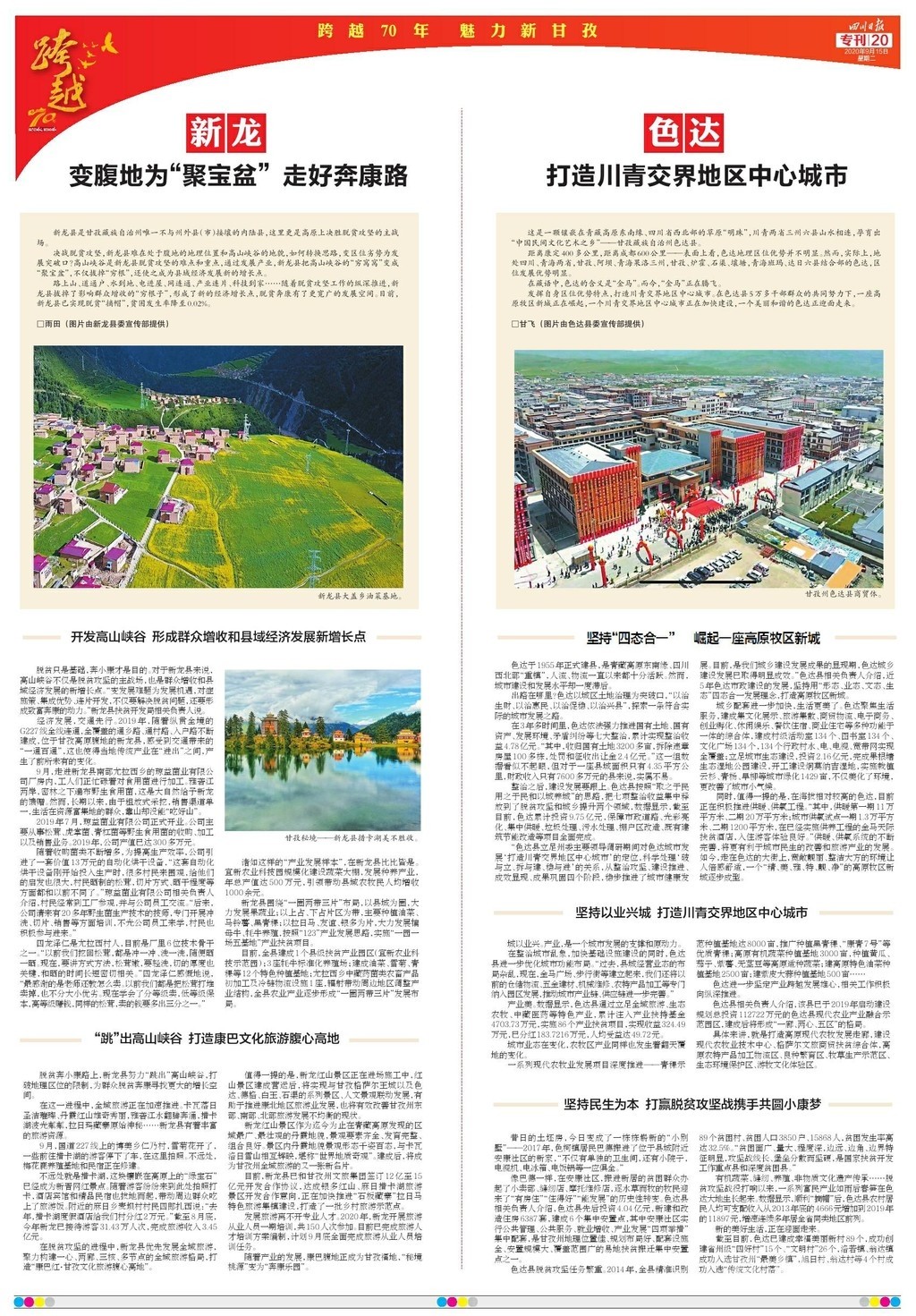 今天,四川省委機(jī)關(guān)報(bào)——四川日報(bào),推出12個(gè)整版的特別報(bào)道“跨越70年 魅力新甘孜”,圖文并茂,濃墨重彩地展現(xiàn)甘孜州70年砥礪奮進(jìn)的光輝歲月。