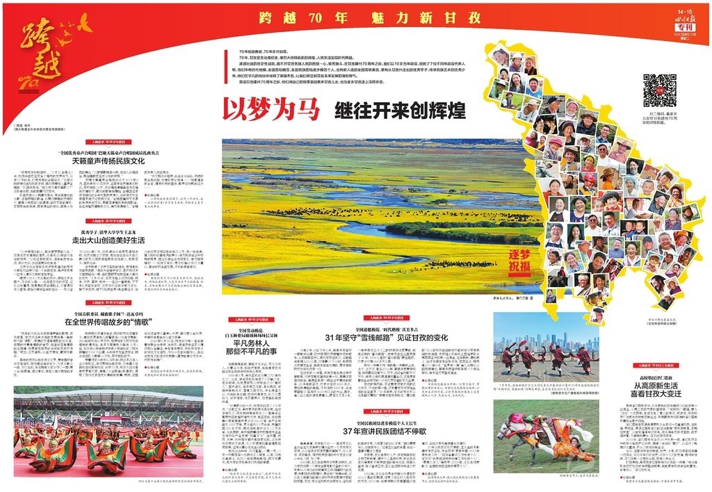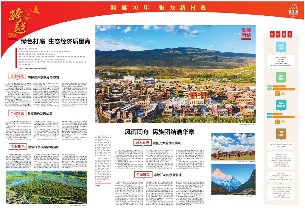 為慶祝甘孜建州70周年,《四川日報(bào)》于9月15日推出八連版特別報(bào)道,整體以紅色打底,充滿喜慶的祝福。