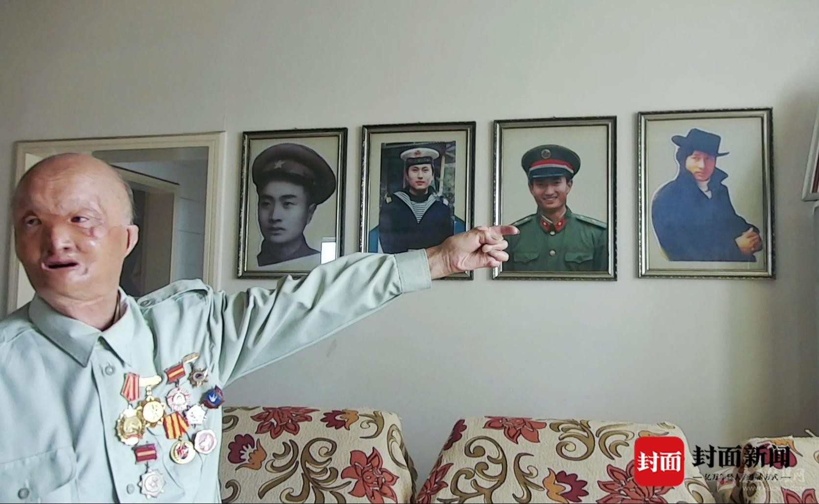 初見這位老人,他的面容讓人印象深刻。69年前那個冬天的朝鮮戰(zhàn)場上,是他一輩子最難忘的經(jīng)歷。年僅20歲的他遭遇敵機投擲的凝固汽油彈,導致面部、手部嚴重燒傷,造成一級傷殘。