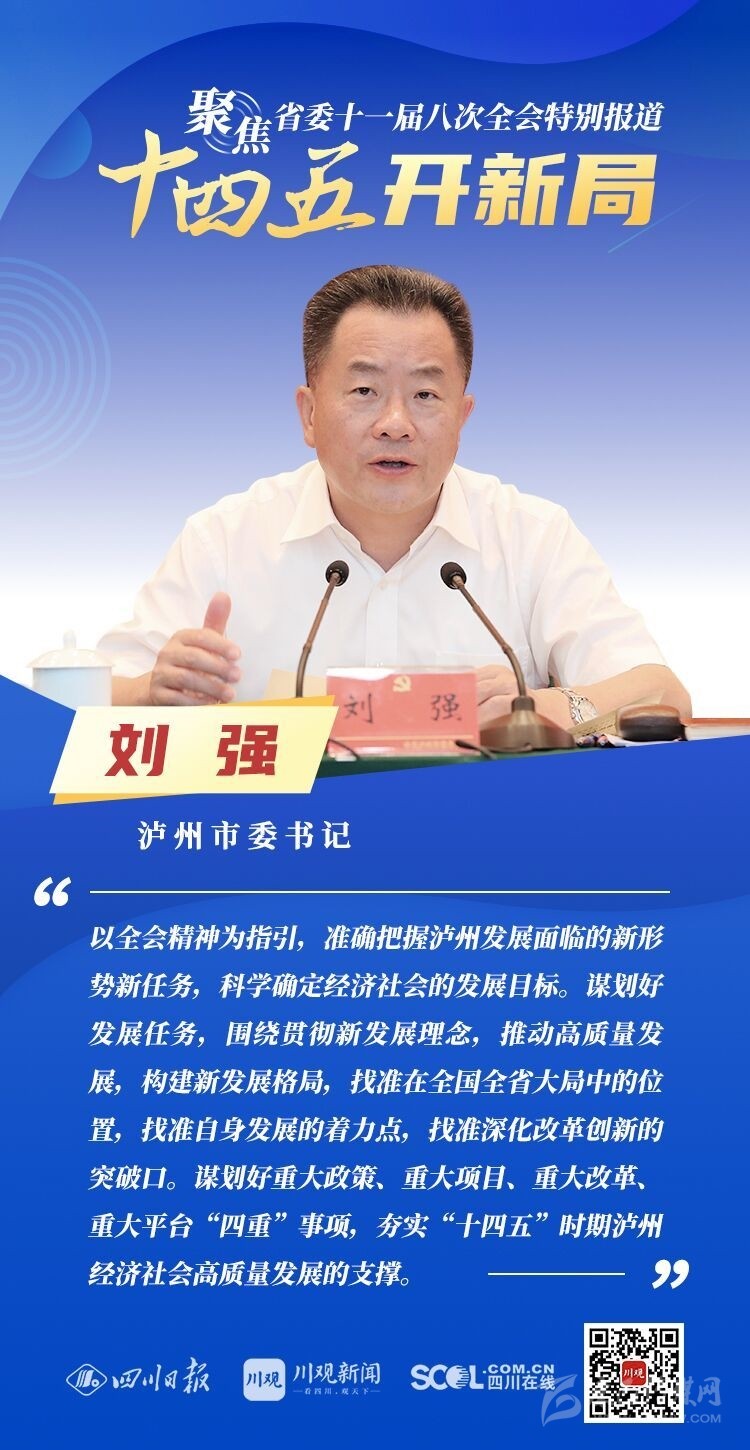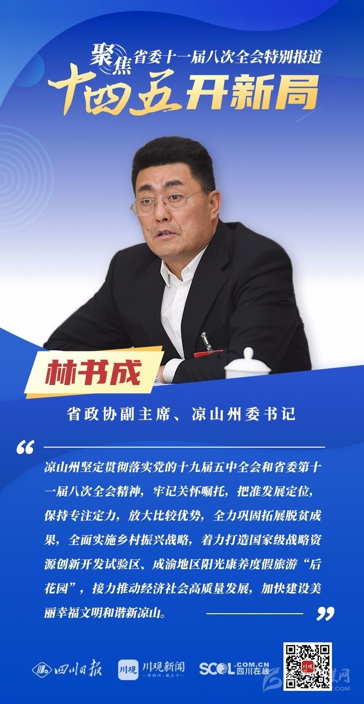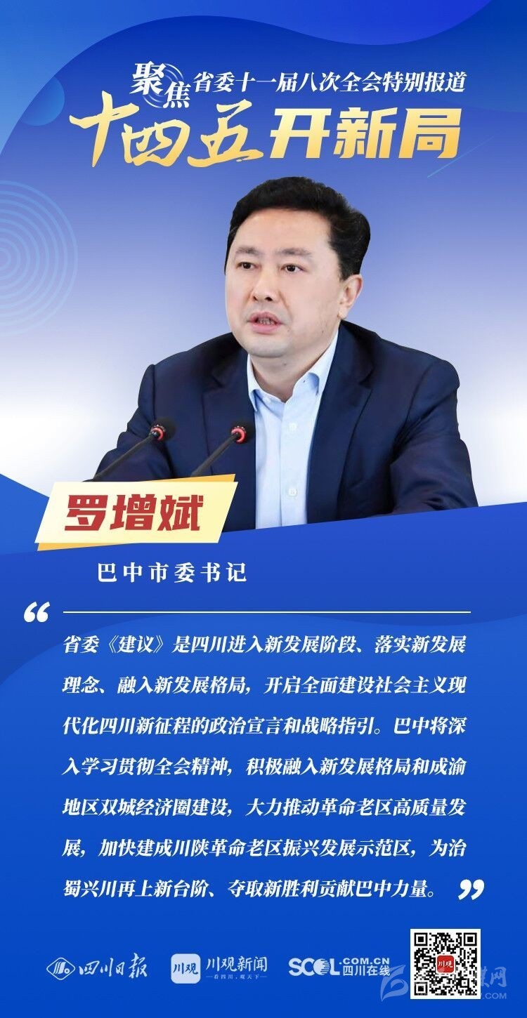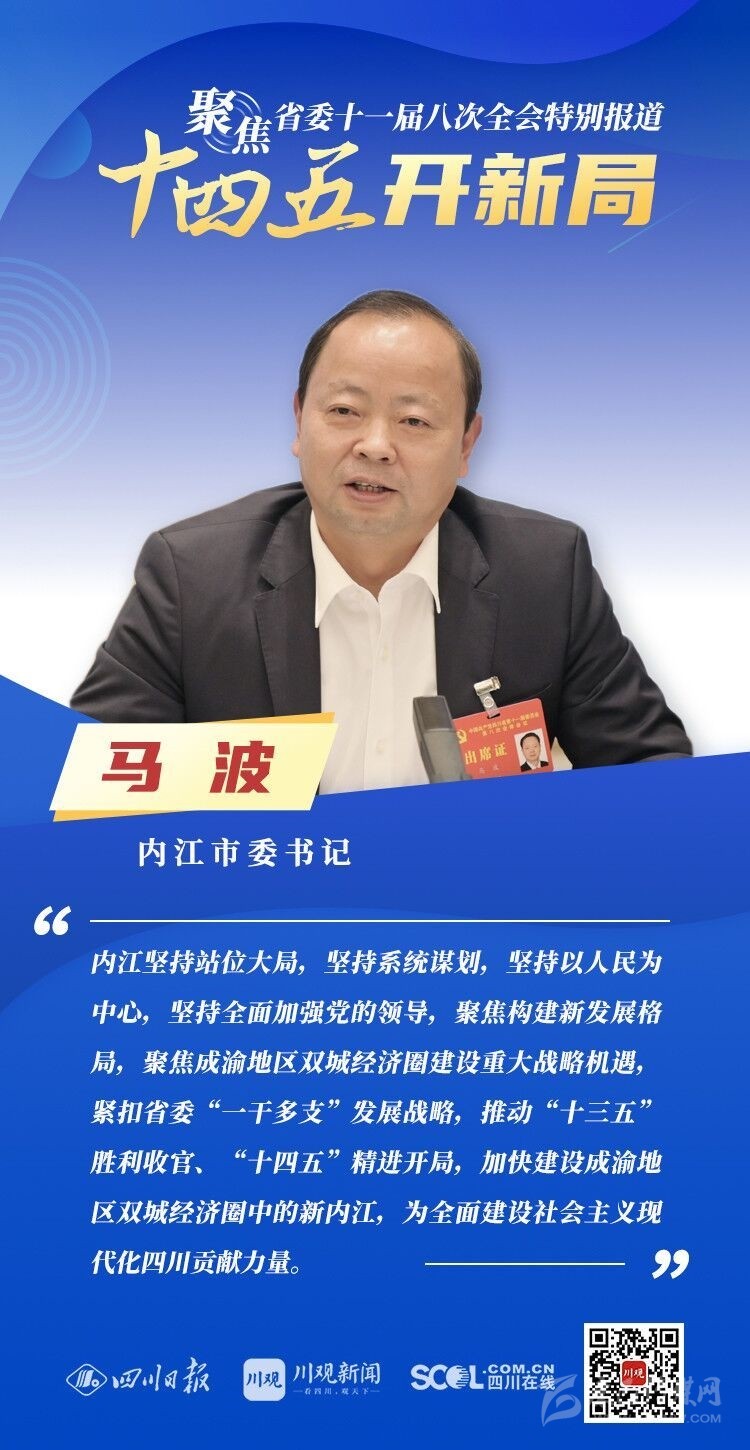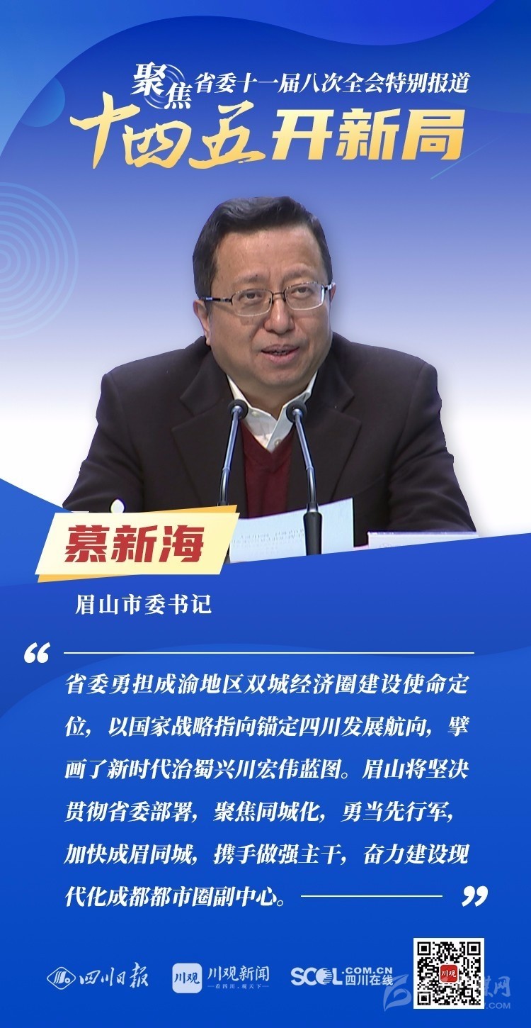 12月3日,中共四川省委十一屆八次全會(huì)在成都開幕,全會(huì)將深入學(xué)習(xí)貫徹黨的十九屆五中全會(huì)精神,審議《中共四川省委關(guān)于制定四川省國(guó)民經(jīng)濟(jì)和社會(huì)發(fā)展第十四個(gè)五年規(guī)劃和二〇三五年遠(yuǎn)景目標(biāo)的建議(討論稿)》,為未來(lái)5年乃至更長(zhǎng)時(shí)期四川發(fā)展謀劃新藍(lán)圖 。