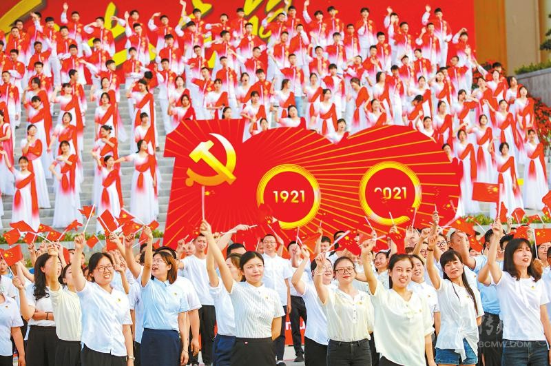 6月30日,遂寧市市民中心廣場,社會各界代表1000余人齊聲高唱《唱支山歌給黨聽》,慶祝中國共產(chǎn)黨成立100周年。劉昌松攝